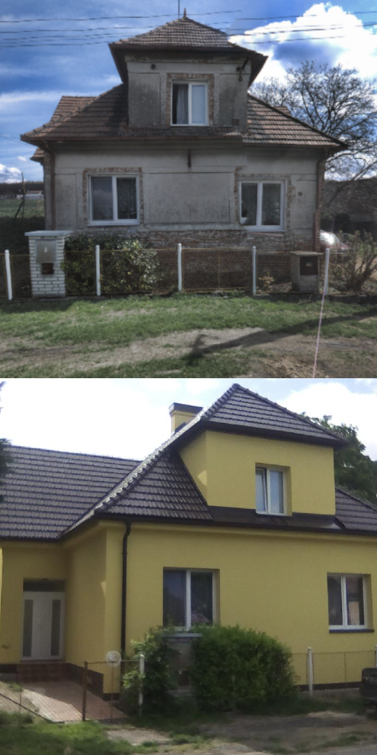 Nová fasáda bez zateplení na RD, plocha 200 m2